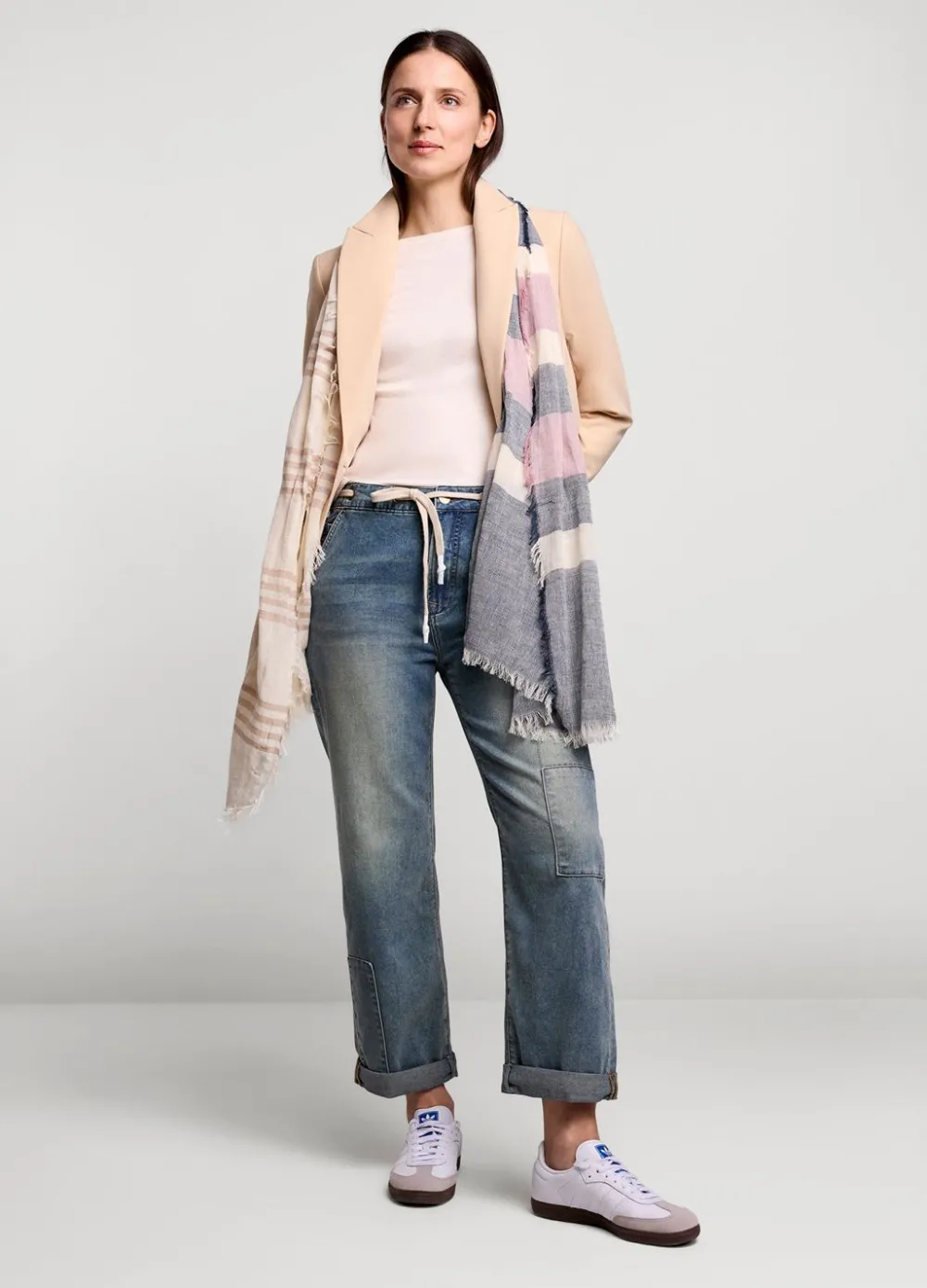 Grote Sjaal Van Zacht Katoen En Geweven In Verschillende Streepvormen. Maat Is Circa 200 X 95Cm